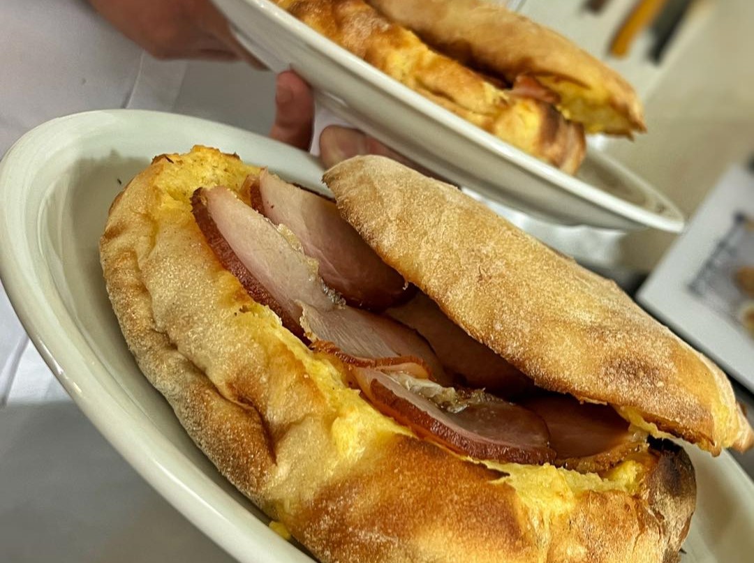 Hrskava lepinja sa pretopom, jajetom i pršutom po ukusu.
