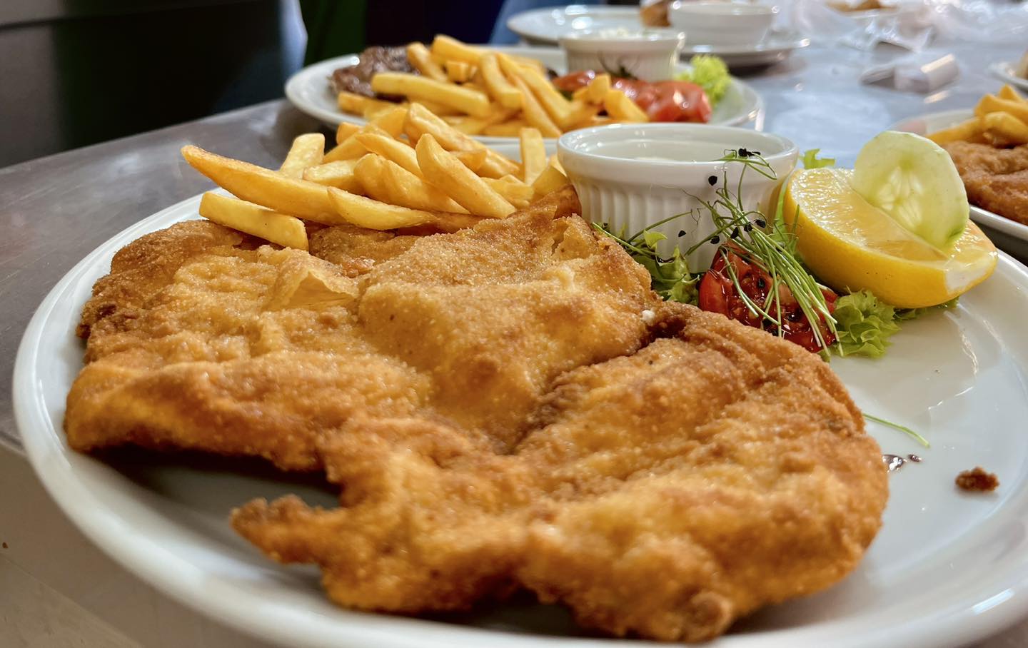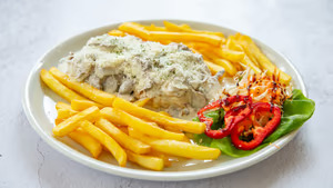 Mekan i sočan teleći ribić savršeno se slaže sa bogatim sosom od kajmaka, pružajući savršenu kombinaciju nežnosti mesa i kremaste teksture sosa. Ovo jelo je pravi užitak za sve ljubitelje telećeg mesa, jer se meso priprema sa pažnjom i poslužuje u sočnom sosu koji naglašava njegov prirodni ukus.